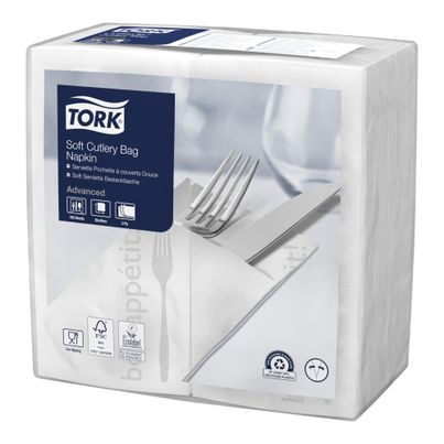 Die 3-lagige Bestecktasche von TORK in Weiß bringt Ordnung auf jeden Tisch. Mit ihren großzügigen Maßen von 40 x 40 cm bietet sie ausreichend Platz für Besteck und Servietten. Ideal für Veranstaltungen oder den täglichen Gebrauch, sorgt sie für ein sauberes und elegantes Ambiente. In einer praktischen Verpackung von 100 Stück hast du immer genügend Vorrat. Hergestellt in Österreich, vereint sie Qualität und Funktionalität.