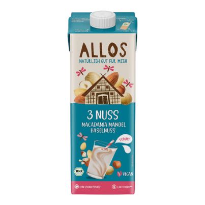 Der 3 Nuss Drink von Allos vereint die besten Eigenschaften von Macadamia, Mandel und Haselnuss und bringt einen mild-nussigen Geschmack direkt in deine Küche. Diese pflanzliche Alternative ist nicht nur laktosefrei, sondern auch vegan und ohne Zuckerzusatz. Perfekt geeignet für alle, die bewusste Ernährung schätzen.