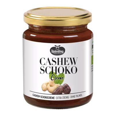 Die Cashew Schokocreme von Keimling Naturkost vereint cremigen Genuss mit einem feinen Schmelz. Hergestellt aus ungerösteten Haselnüssen und Cashews, verfeinert mit edlem Kakao und Kokosblütenzucker, ist sie ein veganer Aufstrich ohne Palmöl und Gentechnik. Ideal für Desserts oder einfach pur vom Löffel – eine himmlische Leckerei!