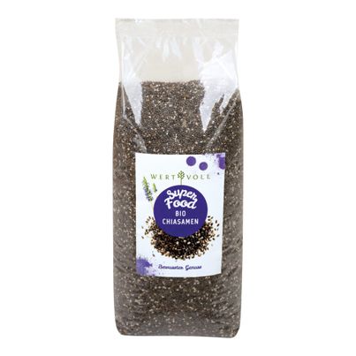 WERTVOLL Chiasamen sind kleine, grau-schwarze Kraftpakete für deine Ernährung. Sie liefern wertvolle Proteine, Omega-3-Fettsäuren und Ballaststoffe. Ideal für Smoothies, Müsli, Joghurt oder Salate, bereichern sie deine Gerichte ohne aufdringlichen Geschmack. Hergestellt in Österreich und aus kontrolliert biologischem Anbau, sind sie eine gesunde Wahl für dich. Beachte, dass sie Spuren von glutenhaltigem Getreide und anderen Allergenen enthalten können.
