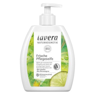 Die Bio Frische Pflegeseife von Lavera Naturkosmetik verwöhnt deine Hände mit einer sanften Reinigung dank der natürlichen Kraft von Limette und Zitronengras. Die pH-hautneutrale Formel sorgt für ein angenehmes Hautgefühl, während der zarte Pflegeschaum deine Haut vor dem Austrocknen schützt. Ideal für die tägliche Pflege, vegan und aus biologischem Anbau.