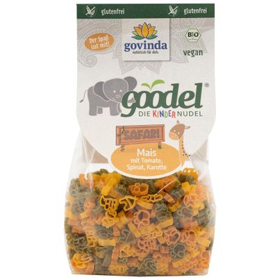 Die Goodel Safari Kindernudeln von GOVINDA sind eine köstliche und gesunde Wahl für kleine Feinschmecker. Diese glutenfreien Nudeln bestehen zu 98 % aus hochwertigem Maismehl und sind mit natürlichen Zutaten wie Tomatenpulver, Karottenpulver und Spinatpulver verfeinert. Handarbeit sorgt dafür, dass jede Nudel mit Sorgfalt und Liebe hergestellt wird.