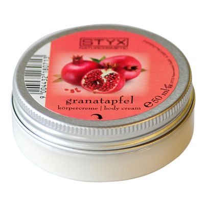 Die Bio Granatapfel Körpercreme von STYX Naturcosmetic verwöhnt deine Haut mit wertvollem Granatapfelkernöl, das Hautirritationen vorbeugt und kleine Fältchen reduziert. Reich an Antioxidantien, schützt sie vor Umweltbelastungen und stärkt die Hautfestigkeit. Genieße die vegane Pflege für strahlende Haut.