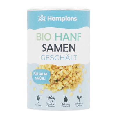 Hempions geschälte Hanfsamen bieten dir eine nussige Geschmackserfahrung in Rohkostqualität. Diese vielseitigen Hanfherzen sind ideal für die Herstellung von Hanfmilch oder als nährstoffreicher Zusatz zu Salaten und Smoothies. Sie sind vegan, hefefrei und frei von Gentechnik, perfekt für eine gesunde Ernährung ohne Laktose und Palmöl.