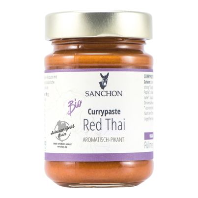 Die Thai Currypaste Rot von Sanchon bietet dir die Möglichkeit, authentische thailändische Currygerichte mühelos zuzubereiten. Diese hocharomatische Würzpaste besticht durch ihre feine Limettennote und verleiht deinen Speisen einen frischen, exotischen Geschmack. Ideal für vegane Ernährung, kommt sie ohne Gentechnik aus und ist somit eine gesunde Wahl für deine Küche.