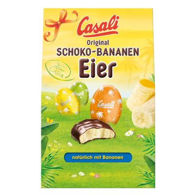 Casali Schoko Bananen Eier bieten dir ein einzigartiges Geschmackserlebnis. Die Kombination aus zarter Schokolade und fruchtigem Bananenschaum sorgt für einen unwiderstehlichen Genussmoment. Perfekt für Ostern oder als süße Belohnung zwischendurch. Lagere sie trocken und bei Zimmertemperatur, um die Frische zu bewahren.