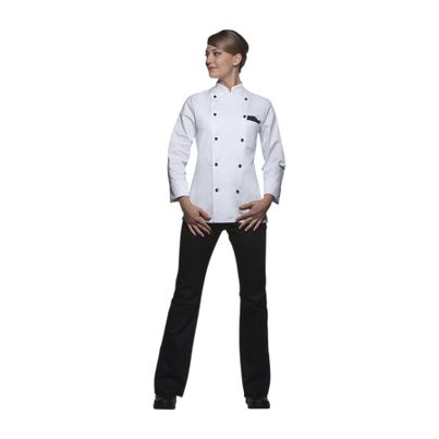 Die Damenkochjacke Agathe in strahlendem Weiß von KARLOWSKY PASSION ist die ideale Wahl für alle, die in der Küche sowohl professionell als auch stilvoll auftreten möchten. Hergestellt aus 100 % Baumwolle mit einem Gewicht von 210 g/m² bietet diese Kochjacke nicht nur optimalen Tragekomfort, sondern auch hervorragende Atmungsaktivität. Der klassische Schnitt sorgt für eine perfekte Passform, während die edlen Details der Jacke deinem Auftreten einen eleganten Touch verleihen.