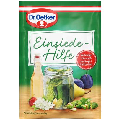Die Dr. Oetker Einsiedehilfe sorgt dafür, dass selbstgemachte aromatisierte Getränke, Marmeladen und Gelees länger haltbar bleiben, indem sie eine vorzeitige Gärung unterdrückt. Ein Beutel mit 10g ist ausreichend für 5kg Fruchtmasse, 13,5l Saft oder Sirup bzw. 2,5l Essigwasser. Besonders praktisch: Die Einsiedehilfe ist leicht löslich, auch in kalten Säften, und somit einfach in der Anwendung. ​