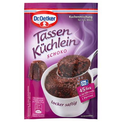 Dr. Oetker Tassen Küchlein Schoko ist der perfekte kleine Kuchen für zwischendurch. Einfach die Backmischung mit Milch in eine Tasse geben, in der Mikrowelle erwärmen – und in nur einer Minute entsteht ein warmer, saftiger Schokokuchen. Ideal für spontane Genussmomente oder wenn der süße Hunger kommt. Mit seinem intensiven Schokoladengeschmack und der lockeren Konsistenz ist dieses Tassenküchlein die perfekte kleine Verwöhnung für Schokofans.