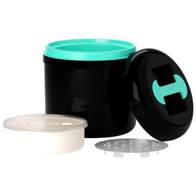 Der Eiswürfelbehälter Hot&Cold von FUCHS GASTRO in stilvollem Schwarz und Türkis ist der ideale Begleiter für jede Veranstaltung. Mit einem thermoisolierten Design hält er Getränke bis zu 6 Stunden warm und 8 Stunden kalt. Der praktische Schnelldrehdeckel ermöglicht einfaches Befüllen und Entnehmen. Mit einem Fassungsvermögen von 1,2 Litern und einer Tropfunterlage ist er besonders benutzerfreundlich. Maße: Ø 22 cm, Höhe 24 cm. Perfekt für Partys, Picknicks und mehr!