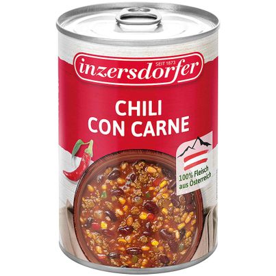 Inzersdorfer Chili con Carne 400g bietet dir traditionelle österreichische Hausmannskost mit einer herzhaften Mischung aus roten Bohnen, saftigem Schweine- und Rindfleisch, knackigem Gemüse und aromatischen Gewürzen. Perfekt für schnelle Mahlzeiten, die nach dem Öffnen gekühlt und innerhalb von 3 Tagen genossen werden sollten.
