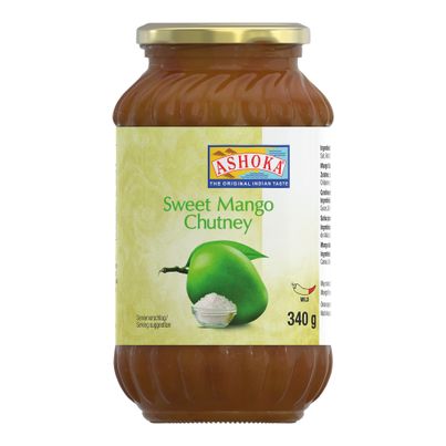 Entdecke das süße Mango Chutney 340g von Ashoka. Genieße den exotischen Geschmack von Mango, verfeinert mit einer würzigen Note aus Chilipulver und Ingwer. Ideal als Beilage zu indischem Essen. Jetzt probieren und genießen!