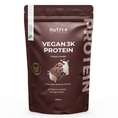 Das nutri+ Vegan 3K Protein zeichnet sich vor allem durch seinen niedrigen Zucker- und Fettgehalt aus. Es ist frei von Aspartam, Konservierungsstoffen und Trennmitteln. Da alle essentiellen Aminosäuren und BCAA enthalten sind, ergibt sich ein optimales Aminosäureprofil sowie eine hohe biologische Wertigkeit. Es ist 100 % Vegan und somit frei von tierischen Inhaltsstoffen (ohne Laktose und Milcheiweiß).
