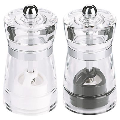 Das CONTACTO BANDER Salz- und Pfeffermühlen Set kombiniert elegantes Design und Funktionalität. Aus robustem Acrylglas gefertigt, bringen die Mühlen mit ihren kompakten Maßen von 5 cm Durchmesser und 10 cm Höhe Stil auf jeden Tisch. Das Kunststoffmahlwerk der Salzmühle sorgt für eine mühelose Zerkleinerung, während das hochwertige Keramikmahlwerk der Pfeffermühle für feinstes Aroma sorgt. Perfekt für alle, die Wert auf Qualität und ansprechendes Design legen.