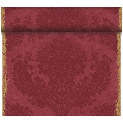 Der Tischläufer Royal in der eleganten Farbe Bordeaux von DUNI bringt einen Hauch von Luxus in dein Zuhause. Mit einer Breite von 0,40 m eignet er sich ideal für festliche Anlässe, Familienfeiern oder einfach, um deinem Esstisch einen stilvollen Akzent zu verleihen. Hergestellt aus hochwertigen Materialien, überzeugt dieser Tischläufer nicht nur durch seine ansprechende Optik, sondern auch durch seine Langlebigkeit. Um den besten Effekt zu erzielen, platziere den Tischläufer mittig auf deinem Tisch oder lasse ihn über die Kanten hängen für einen besonders eleganten Look. Kombiniere ihn mit passenden Servietten und Geschirr, um ein harmonisches Gesamtbild zu schaffen. Der Bordeaux-Ton harmoniert hervorragend mit Gold- oder Silbertönen, was ihn zur perfekten Wahl für festliche Anlässe macht. Die Pflege ist denkbar einfach: Der Tischläufer ist abwischbar und somit ideal für den täglichen Gebrauch. Bei besonderen Anlässen kannst du ihn auch als Unterlage für dekorative Elemente nutzen, wie Kerzenhalter oder Blumenarrangements. So setzt du stilvolle Akzente und schaffst eine einladende Atmosphäre. Nutze den Tischläufer Royal Bordeaux auch für Gartenpartys oder Picknicks. Er ist leicht und kann problemlos transportiert werden, um überall ein wenig Eleganz zu verbreiten. Verleihe deinem Esstisch mit diesem Tischläufer einen Hauch von Klasse – die ideale Wahl für jeden Anlass.