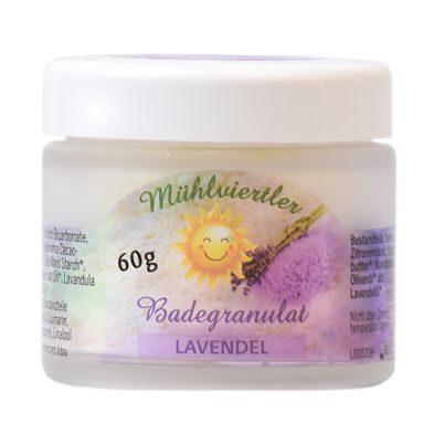 Immerse yourself, switch off and enjoy with our lavender bath granules. This is made in our small, fine Mühlviertel factory with the finest essential lavender oil from controlled organic cultivation. Immerse yourself in a bath with a relaxing, calming lavender scent and leave everyday life behind you. We pack our lavender bath granules for you by hand in our small Mühlviertler factory in recyclable, resealable glass containers. This is enough for 2 full baths and is perfect as a feel-good gift or to enjoy yourself.