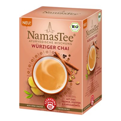 Teekanne's Organic Namas Tea Spicy Chai offers an intense flavor experience that will transport you to a world of spices. With 48% cinnamon and a harmonious blend of chicory root, ginger, licorice, cloves, sweet leaves, cardamom oil, and black pepper, all from certified organic farming, you get a tea that will delight not only your palate but also your senses. A preparation tip: Let the tea bag steep in hot water for about 5-8 minutes to develop its full aroma. This chai offers a warming and calming effect, especially during the colder seasons of Advent. You can enjoy it neat or refine it with a dash of milk and a little honey for a creamy touch. Organic Namas Tea is not just a drink, but an experience that will give you moments of relaxation and well-being. Store the tea bags in a cool, dry place to maintain freshness and quality. Ideal for cozy evenings or as a gift for tea lovers who value organic quality.