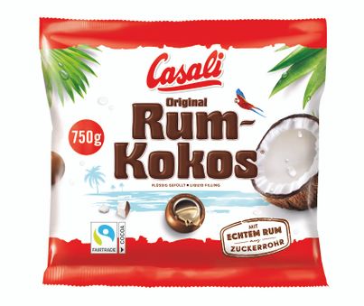 Casali Rum-Coconut Black & White offers the perfect combination of milk and white chocolate, coated in fine coconut flakes. The liquid rum core provides an exotic taste experience. Packaged in a practical 300g resealable tin, the dragees stay fresh and are ideal for on-the-go.