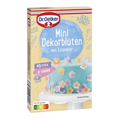The Dr. Oetker Mini Decor Flowers instantly transform both small cakes such as muffins and cupcakes, as well as regular cakes and tarts into loving flower meadows. The fine flowers made out of edible paper in the colors yellow-orange, pink, purple and coral provide a real eye-catcher. One pack contains 40 flowers.