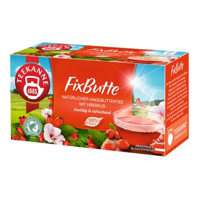 Fixbutte from Teekanne offers a fruity treat made with natural rosehips and hibiscus. This vegan fruit tea brings a soothing warmth to cold winter days and is perfect for the Advent season. Let yourself be pampered by this harmonious blend and enjoy a cup full of natural flavors.