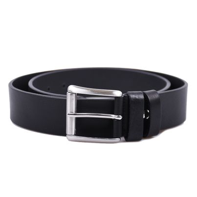 Handmade denim belt with roller buckle made of full cowhide leather - Black - 40mm width