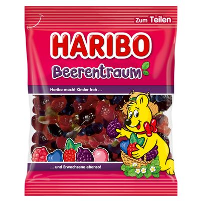 HARIBO Beer Dream convinces with a harmonious selection of berry flavors such as strawberry, raspberry, blackberry and currant. This product combines indulgence with a playful look and is popular with both children and adults. Five popular berries in one bag - currant, wild berry, raspberry, blueberry and blackberry! It's really crazy how berry they are - a berry dream! The soft and smooth fruit gum from Haribo in delicious berry flavors with different sized product pieces.