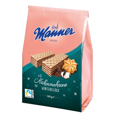 Manner Winterglück slices à la coconut macaroon - the coconut treat to share! We are now sweetening the chilly season with new wafer creations - Manner Winterglück in three delicious flavours.