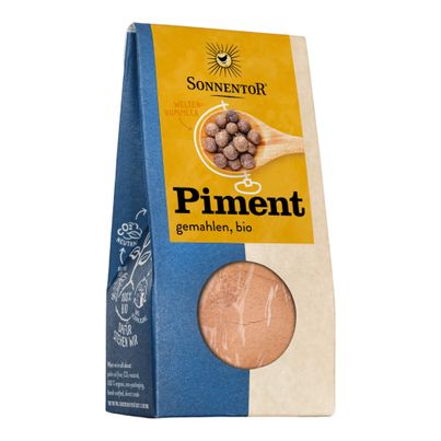 Organic ground allspice from Sonnentor adds a warm, spicy note to your dishes. This vegan spice, packaged with reduced plastic, is ideal for gingerbread and savory dishes. Perfect for vegan cooking and certified organic in Lower Austria. EAN: 9004145003675.