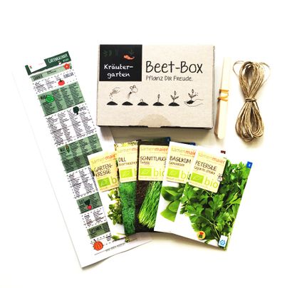 • Organic bed box - herb garden - seed set including planting calendar and accessories - gift idea for hobby gardeners