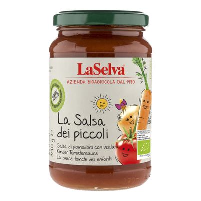 Discover the organic children's tomato sauce 340g in a value pack of 6 from La Selva. Pure enjoyment without added sugar and artificial flavors. With a sweet note thanks to grape juice and carrots. Only 0.05g sea salt, onions and basil for an intense taste. Ideal for little connoisseurs. Discover La Selva's philosophy in this sugo category.