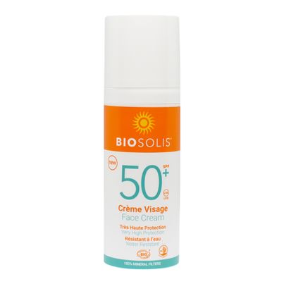 Biosolis' Organic SPF 50+ Face Cream offers 100% mineral sun protection without nanoparticles. Formulated with aloe vera and sesame oil, it intensively nourishes your skin and reliably protects it from UV rays. The natural formula, with 98.39% ingredients of natural origin, is ideal for sensitive skin.