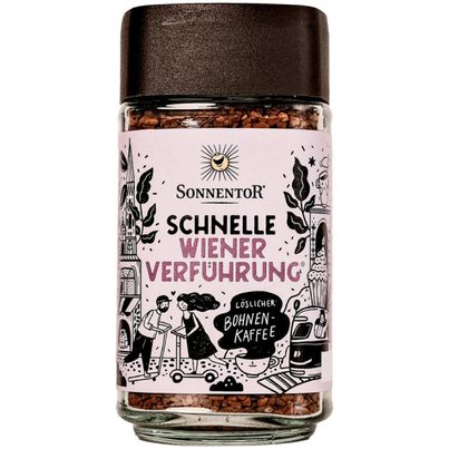 Sonnentor's Organic Fast Viennese Temptation brings the unmistakable taste of Vienna straight to your home. With its deliciously nutty aroma and mild roasted notes, this coffee blend is a true treat. The pleasant acidity perfectly rounds off the taste experience. Use 100g of the blend to conjure up up to 50 cups of aromatic coffee. A tip: For the best taste, pour hot, but not boiling, water over the coffee. This allows the full aroma of the 100% Arabica beans to unfold. Ideal for a quick treat without sacrificing quality. The freeze-dried, soluble form makes preparation particularly quick and easy. Store the package in a cool, dry place to preserve freshness. Perfect for those who value organic quality and appreciate the authentic Viennese coffee experience.