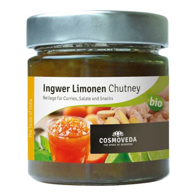 Discover the delicious world of Indian cuisine with the organic ginger-lime chutney from Cosmoveda! Refine your dishes with the sweet, sour and spicy taste and enjoy the versatility of the chutney as a side dish or dip for your favorite dishes. With the 6-pack you always have enough supplies for your meals. Try it and enjoy the unique flavors!