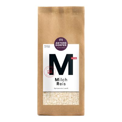 Antersdorfer Mühle's organic milk rice in a value pack of 6 offers the perfect base for creamy desserts. The hulled short-grain rice absorbs a lot of liquid while retaining its firmness. Ideal for vegan desserts, casseroles, or cakes. Enjoy GMO-free, organic quality.