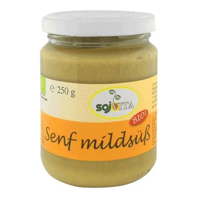 In addition to mustard seeds, Sojvita mustard mild sweet also contains wine vinegar, spices and Sojvita rice malt. The rice malt in particular increases the quality of the mustard because it is not only much milder and more natural than sugar, it also gives the mustard a particularly c