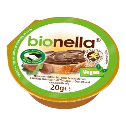 Bionella's organic hazelnut nougat spread offers you an incomparable taste experience. With fair-trade cocoa and cane sugar, as well as freshly roasted hazelnuts from the Rapunzel Turkey project, every spoonful is a delight. Vegan, organic, and non-GMO – ideal for conscious connoisseurs.