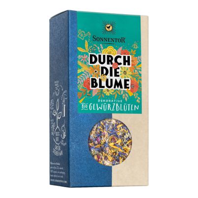 Sonnentor's organic "Through the Flower" flower blend transforms desserts, ice cream, and muesli into colorful works of art. With marigolds, sunflower petals, rose petals, and cornflower blossoms, it adds a special touch to your creations. Ideal for creative kitchen experiments, and 100% organic.