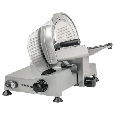 Die Aufschnittmaschine Family 220 von TOPERCZER überzeugt durch ihre hochwertige Verarbeitung und ist die perfekte Ergänzung für deinen gehobenen Haushalt oder landwirtschaftliche Betriebe. Mit einem hartverchromten Messer von Ø 22 cm, ausgestattet mit einer patentierten Antihaft Rille, gelingt dir das Schneiden von Wurst, Speck, Fleisch, Gemüse und Käse mühelos.