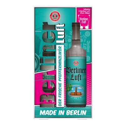 Berliner Luft ist der erfrischende Pfefferminzlikör, der mit 18 % Vol. für einen spritzigen Genuss sorgt. Ideal für gesellige Abende, kommt er mit zwei stilvollen Gläsern, die das Trinkerlebnis perfekt abrunden. Serviere ihn gut gekühlt oder als besonderen Cocktail-Mix. Ein echter Berliner Klassiker, der in keiner Bar fehlen sollte!
