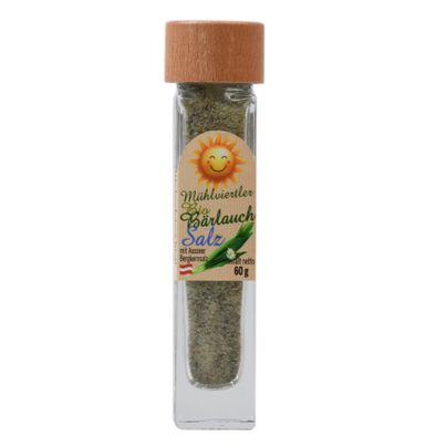 Der frische BIO Bärlauch wird in unserer keinen Mühlviertler Manufaktur per Hand mit unjodiertem, unraffiniertem Meersalz vermengt und garantiert so ein würziges Geschmackserlebnis. Wir genießen unser BIO Bärlauchsalz gerne zu Salat, Nudeln und Topfenaufstrichen, oder einfach pur zu Kartoffeln.