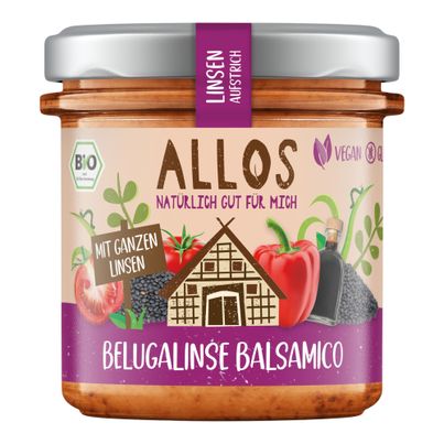 Belugalinse Balsamico Aufstrich von Allos bringt nussig-tomatige Aromen in dein Brot oder deine Snacks. Die Kombination aus Belugalinsen, Tomaten und einem Hauch Balsamico sorgt für ein intensives Geschmackserlebnis. Vegan und ohne Gentechnik, ist dieser Aufstrich nicht nur lecker, sondern auch gesund. Ideal für kreative Küchenideen und als proteinreicher Snack!