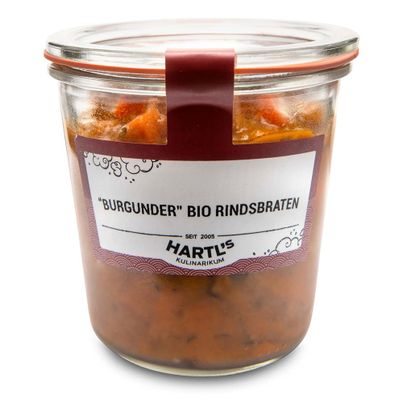 | Zutatenliste | Wasser, Rindfleisch(25%)*, ROTWEIN*(enthält SULFITE) Karotten*, SELLERIE*, Tomatenmark*, WEIZEN- MEHL*, Pflanzenöl*, Quellsalz unjodiert, Zucker*, Pfeffer*,Wacholderbeeren*, Lorbeer*,Thymian* Fleisch: Ursprung ÖSTERREICH |