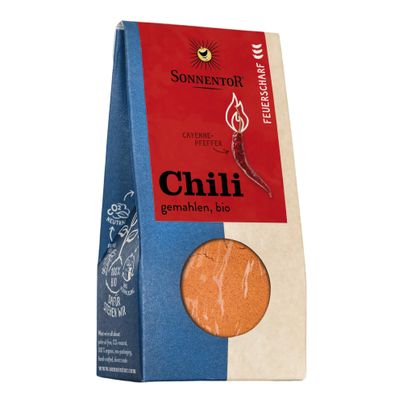 Bio Chili feuerscharf gemahlen von Sonnentor bringt intensive Schärfe in deine Küche. Dieses vegane und plastikreduziert verpackte Gewürz verleiht deinen Gerichten eine feurige Note. Ideal für Suppen, Saucen und Eintöpfe. Perfekt für alle, die auf Bio-Qualität und Nachhaltigkeit setzen.