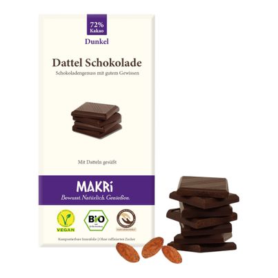 Lass dich von der einzigartigen Kombination aus Kakaogeschmack und der Süße der Datteln verführen. Die Dattel Schokolade Dunkel von Makri ist nicht nur ein Genuss für deine Geschmacksknospen, sondern bietet auch die Möglichkeit, bewusst zu naschen. Verwöhne dich selbst oder teile die Freude mit Freunden und Familie – diese Schokolade bringt garantiert ein Lächeln auf jedes Gesicht.