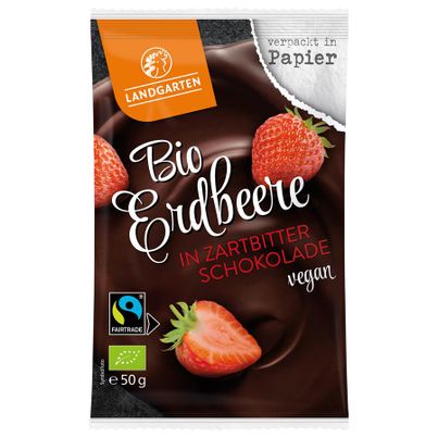Mit den zartbitteren Erdbeeren von LANDGARTEN tauchst du in ein unvergleichliches Geschmackserlebnis ein. Die Kombination aus gefriergetrockneten Erdbeeren und hochwertiger Fairtrade Zartbitter-Schokolade sorgt für eine fruchtig-schokoladige Verwöhnung, die nicht nur vegan, sondern auch ohne Gentechnik hergestellt ist. Die intensiven Aromen der Erdbeeren harmonieren perfekt mit der 90%-igen Zartbitterschokolade und bieten dir ein unverwechselbares Snackvergnügen.