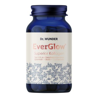 Mit EverGlow Superior Kollagen von Dr. Wunder entscheidest du dich für einen hochwertigen Nährstoffkomplex, der speziell entwickelt wurde, um deine Haut, dein Bindegewebe und deine Gelenke zu unterstützen. Die Kombination aus Typ I, V und X Kollagen aus Eierschalenmembran sorgt für eine optimale Versorgung deiner Haut mit den Bausteinen, die sie für eine strahlende Ausstrahlung benötigt.