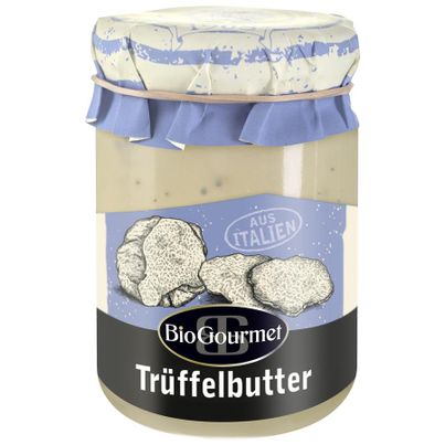 Die BIOGOURMET Trüffelbutter ist eine exquisite Delikatesse, die deine Geschmacksknospen auf ein neues Level hebt. Hergestellt aus 93 % hochwertiger Bio-Butter und verfeinert mit 6 % edlem Sommertrüffel (Tuber aestivum Vitt.), bietet dieses Produkt einen unvergleichlichen Geschmack, der jedes Gericht veredelt.