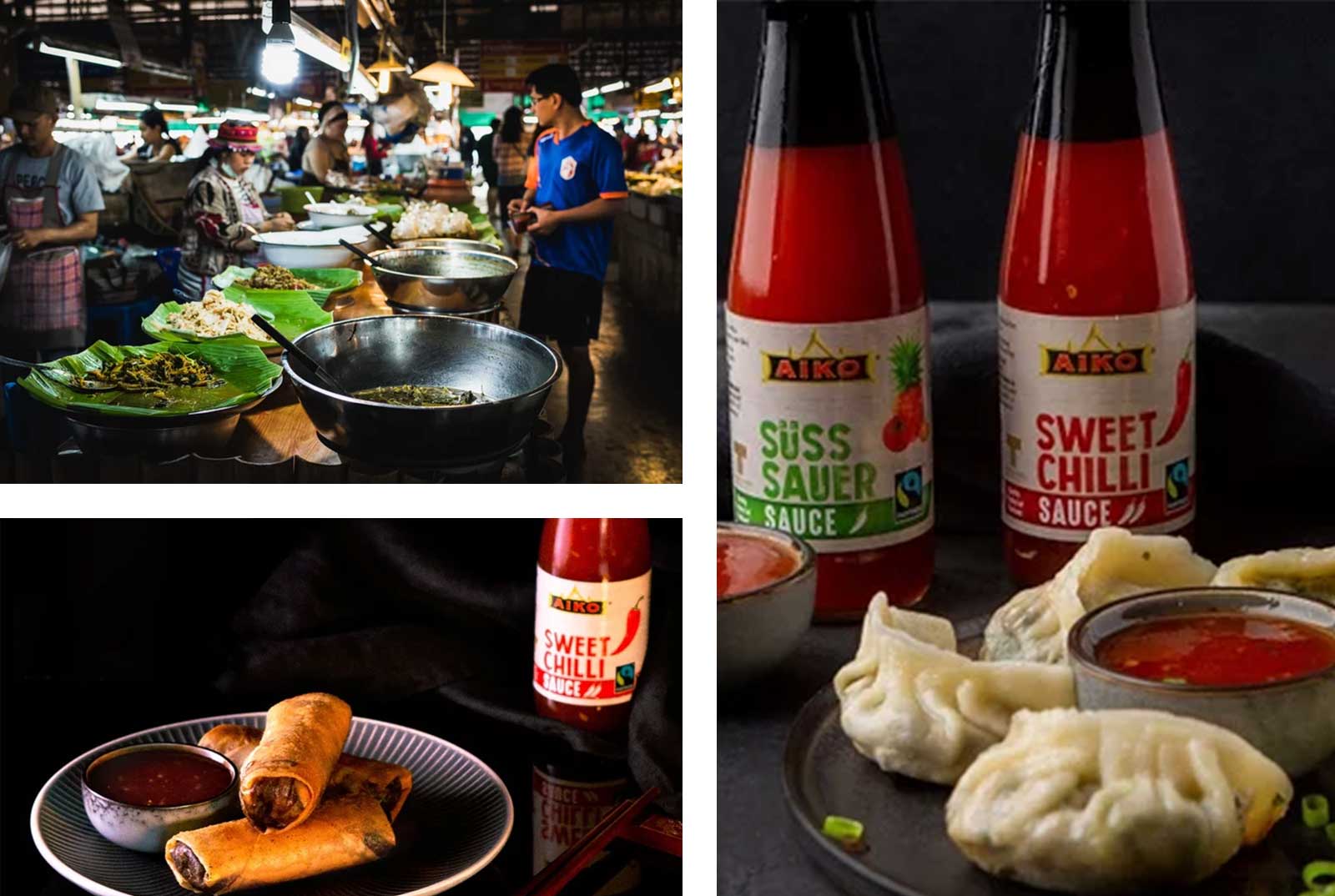 Die AIKO® Sweet Chili Sauce und Süß Sauer Sauce stammen aus fairem Handel und tragen daher das Fairtrade Siegel. Mit den beiden AIKO® Fairtrade Produkten bieten wir authentisch thailändischen Geschmack und verbessern die Lebensbedingungen unserer Lieferanten in Asien.