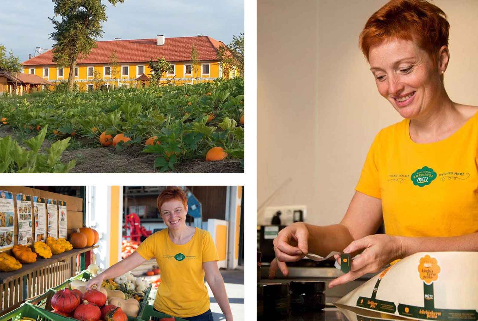 The idea of growing pumpkins, which the Metzt family brought home from an excursion in 1999, developed into a favourite branch of the business, in which the whole family is involved. Over 150 different pumpkin varieties are now grown, meaning that the right pumpkin can now be offered to every customer - from beautiful, colourful ornamental pumpkins in all sizes to the many delicious edible pumpkins. Excellent pumpkin seed oil is pressed from the seeds of the oil pumpkin, a pumpkin seed pesto loved by connoisseurs is made and many different types of snack seeds are produced. They also press high-quality rapeseed oil with their own press and make creative fruit spreads.