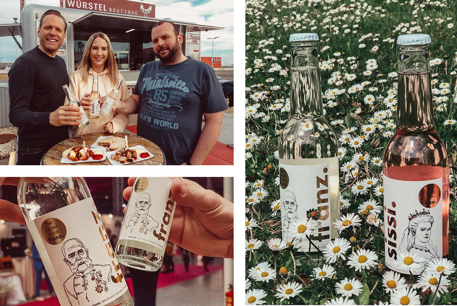 Nicht gesucht, aber doch gefunden. Die Spritzer franz. und sissi. waren eigentlich ein Zufallsprodukt. Umso dankbarer sind Lisa, Alex und Micha dass sie nach vielen gemeinsamen Jahren noch immer im alt-bewährten Team zusammenarbeiten dürfen. Während Freigeist Alex sowohl die Arbeit im Weingarten als auch in der Produktion liebt, ist Micha die Rampensau der ersten Stunde und immer in der ersten Reihe unterwegs. Er liebt den Vertrieb und fühlt sich am wohlsten in der Kalt-Akquise. Lisa hat immer alle Prozesse im Griff, tanzt im Tagesgeschäft auf vielen Kirtagen und hält schlussendlich den Spritzer-Dampfer verlässlich auf Kurs.